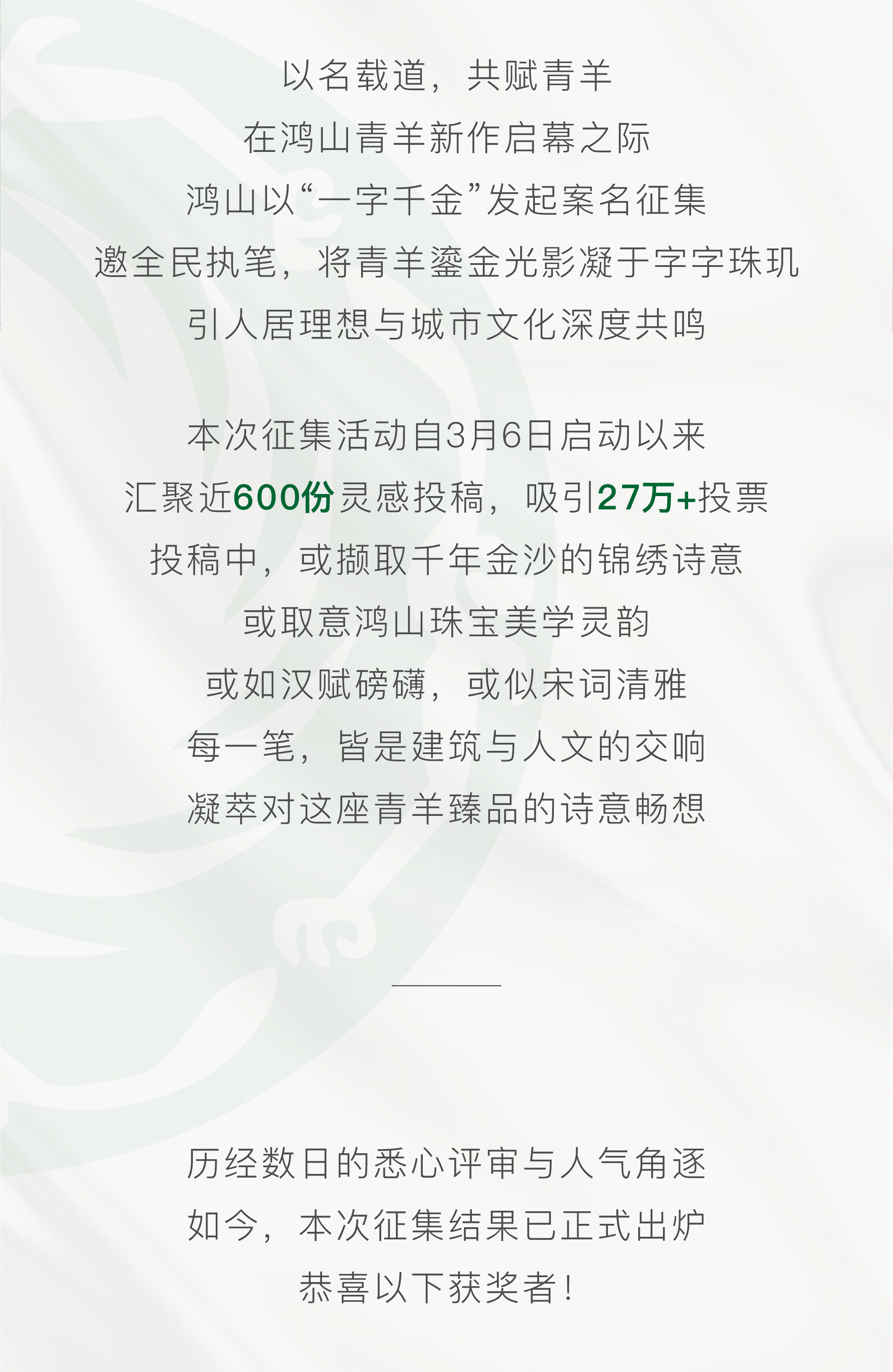 金笔争辉 华彩盛启丨鸿山青羊新作案名征集结果揭晓!